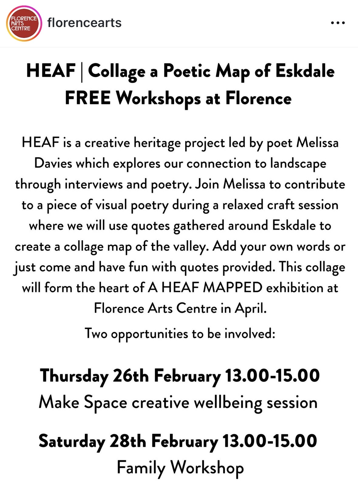 Anyone who considers themselves to have connection to Eskdale Valley can contribute by volunteering to be interviewed; participating in a workshop or simply attending a performance. Details of participation opportunities will be published here & on Instagram.